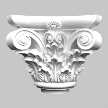 Размеры капители составляют 420 мм в ширину, 338 мм в глубину и 420 мм в высоту, что позволяет ей гармонично вписаться в различные пространства. Капитель выполнена в классическом дизайне, что делает её универсальным элементом, который можно использовать как в традиционных, так и в современных интерьере.